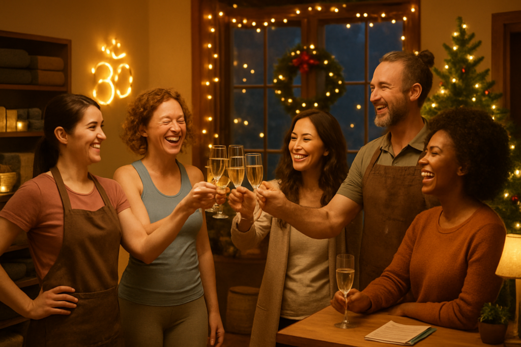 • Festive Themed Events & Challenges: Hosting holiday-themed events can energize your clientele. Fitness centers might run a “12 Days of Fitness” challenge or a “Jingle Bell Yoga” class to keep members active despite the seasonal slowdown[3]. Salons and spas could offer a “Holiday Glow” event – an evening of mini services with hot cocoa on the side. The key is to infuse fun: think ugly sweater workout days, Christmas music rides, or a peaceful Christmas Eve candlelight yoga session[4]. These events create a memorable experience and give clients an extra reason to visit.